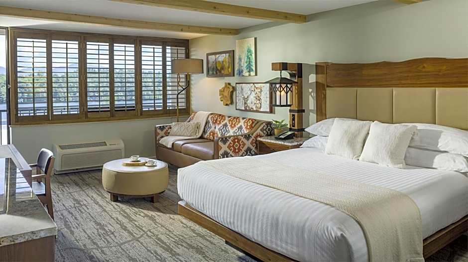 Guests can take advantage of free access to the outdoor and indoor swimming pools, hot tub, and fitness center, or indulge in water sports on the nearby lake. If you're a skiing enthusiast, the resort is an ideal choice with its ski amenities and access to the slopes. Pet owners will also be delighted as this resort is pet-friendly, although additional charges may apply.
